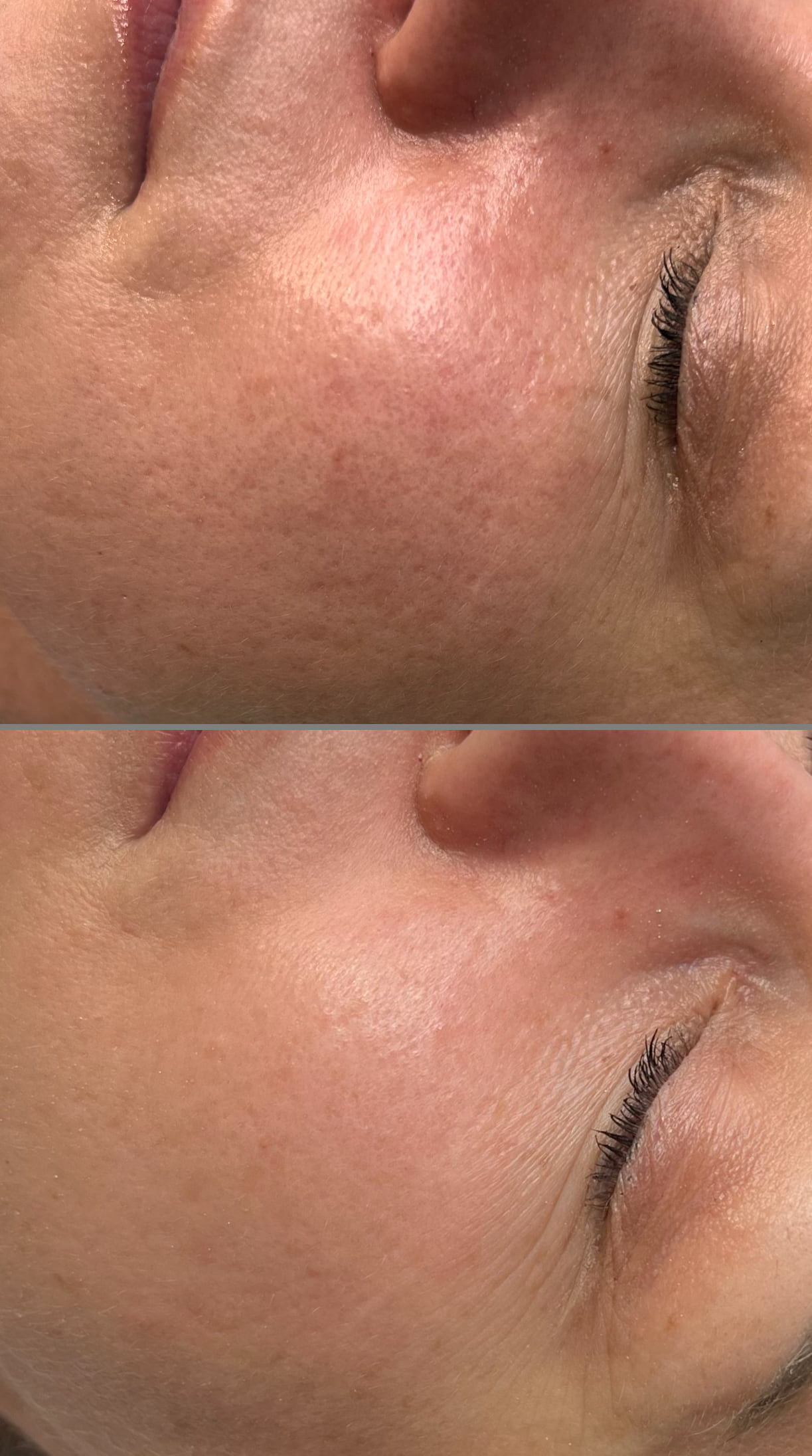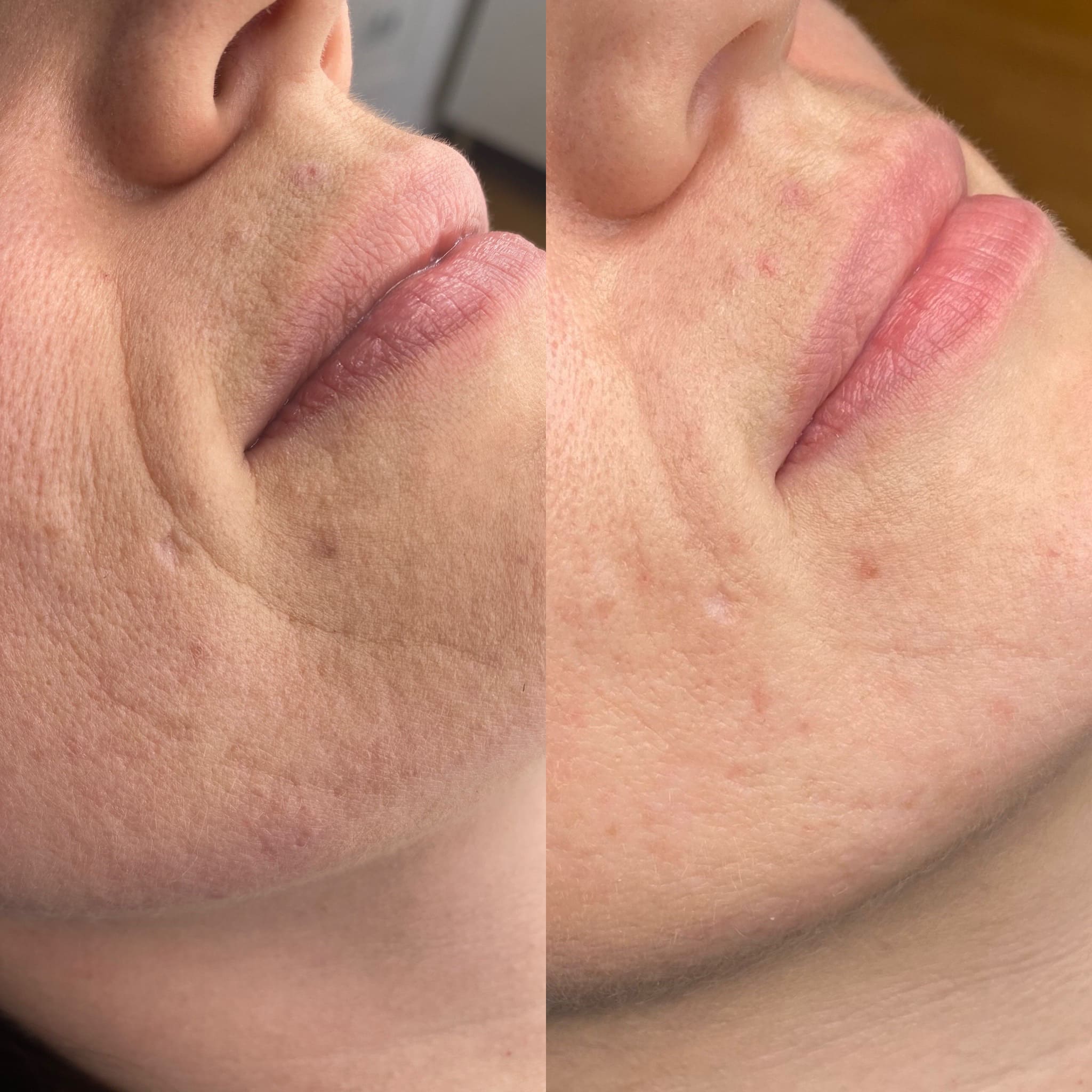 Po zabiegu skóra może być lekko zaróżowiona, napięta i ciepła – to naturalna reakcja na działanie lasera. W kolejnych dniach może pojawić się delikatne złuszczanie lub uczucie suchości.